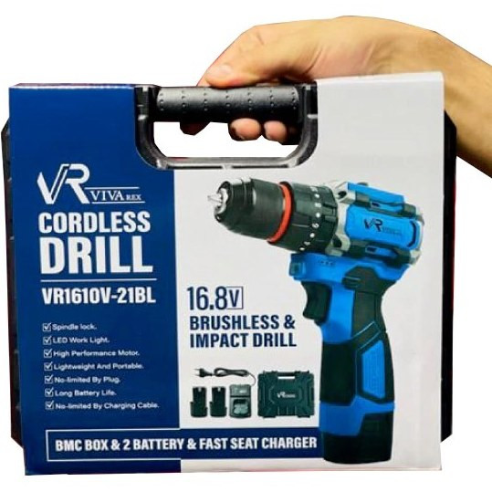 دریل شارژی ویوارکس مدل VR1610V-21BL با ۲ باتری و موتور براشلس