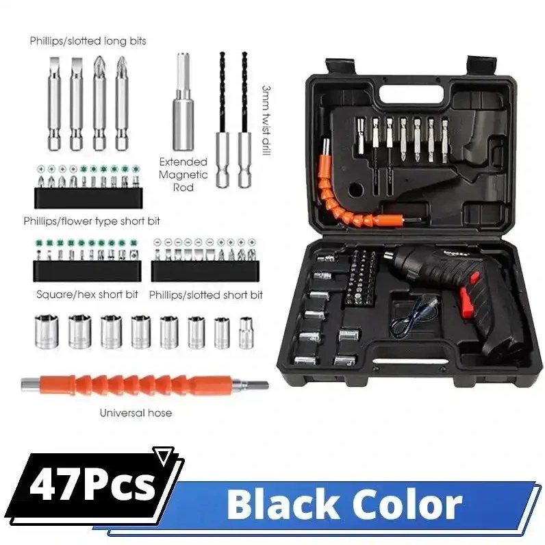 دریل و پیچ گوشتی شارژی مدل ۴۷ تکه با باتری لیتیومی